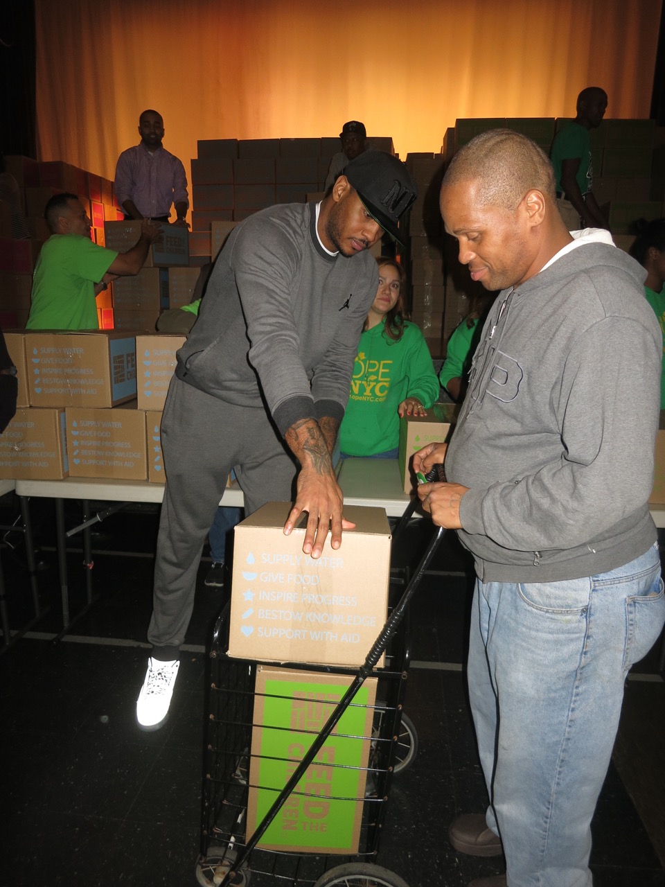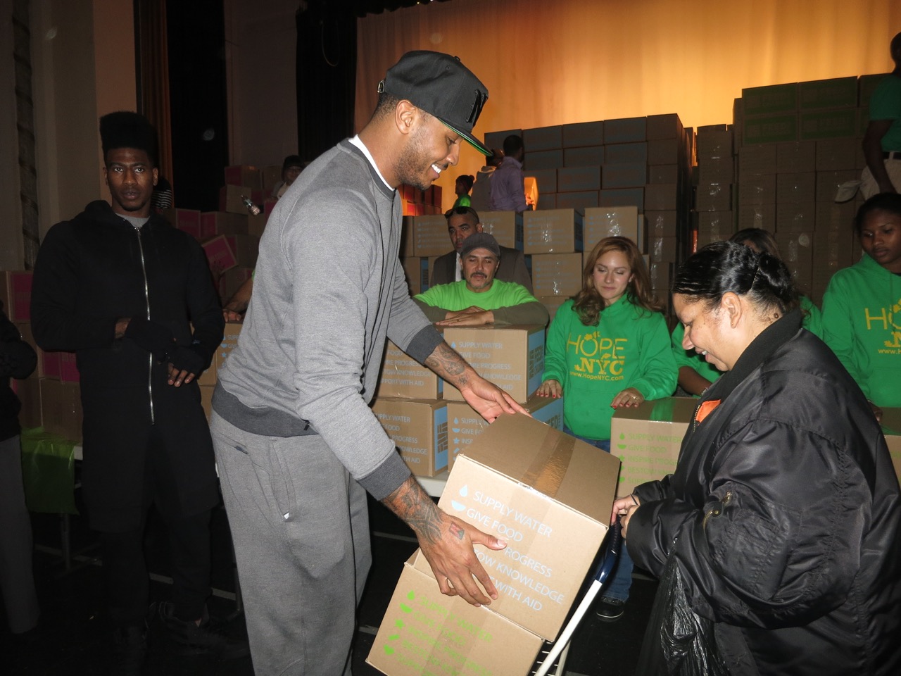 Carmelo Anthony’s teammate Iman Shumpert was present and showed support at the event & helped distribute the boxes to the families in need along with Anthony.