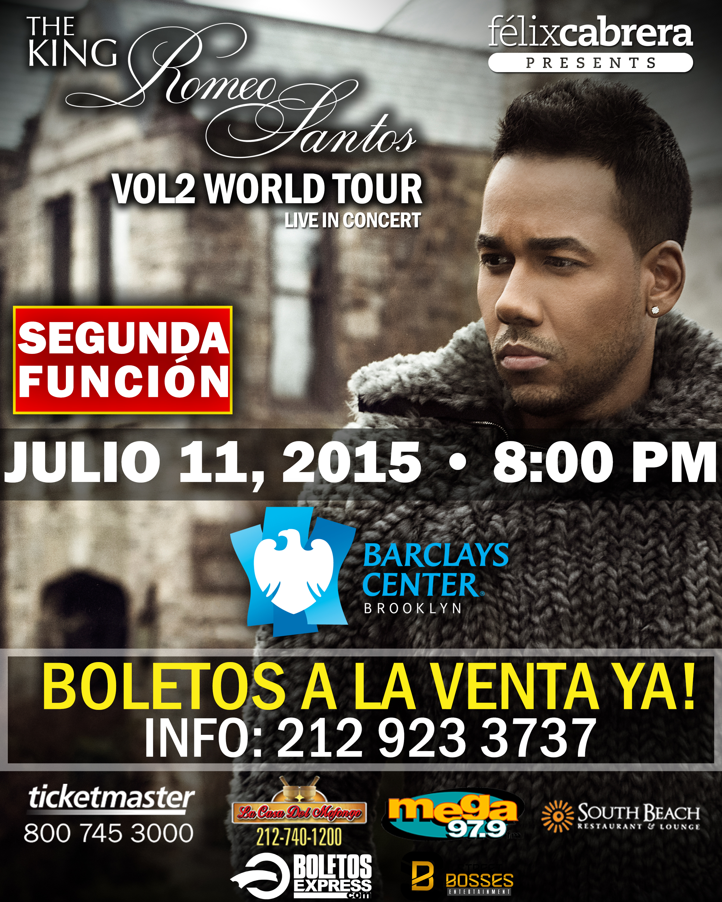 The King Of Bachata ‘Romeo Santos’ will take over the Barclay Center with two performances July 10th and 11th. The King Romeo Santos Vol 2 World Tour will take over Brooklyn for two days straight. To purchase tickets visit www.ticketmaster.com and don’t miss out to see Romeo Santos this summer. You don’t want to miss this!