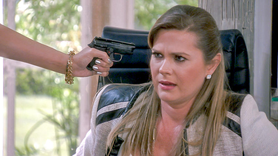 Cayetana ve a Leonardo con Isadora y decide retirarse sin decir nada. Gallardo le dice a Malkovich que es uno de los homicidas de Ignacio Del Junco. Sofía se entera que Leonardo está vendiendo el rancho Del Junco. Cabrera va a buscar a Rocío y le dice que sabe lo del hijo. Cayetana se da cuenta que Leonardo es un traidor. Eleazar escucha la conversación y decide contarle a Leonardo. Malkovich negocia con las autoridades. Sofía sabe que hay algo oculto en todo lo de la venta del Rancho. Eleazar le dice a Leonardo que Cayetana sabe todo. Rocío y Cabrera hacen las paces. Cayetana confronta a Leonardo. Cayetana golpea a Leonardo y el empieza a golpearla y le confiesa que fue muy fácil de manipular y que merece todo lo que le pasa. Cayetana le dic a Leonardo que no va a permitir que toque un solo centavo del rancho Del Junco. Leonardo le confiesa que el rancho está en venta y que él tiene un poder que ella va a firmar para que él pueda vender el rancho. Isadora llega y apunta a Cayetana con un arma. Leonardo obliga a Cayetana a firmar el poder pero ella se niega y él dice que la va a tener que matar. Andrea regresa al rancho y Cayetana finge que le va a dar otra oportunidad a Leonardo. Cayetana está amenazada por Leonardo y le pide a Andrea que se vaya. Cayetana sigue cumpliendo las órdenes de Leonardo. Andrea llega al rancho Alcázar diciendo que su madre la saco de su casa. Don Felipe apunta a Leonardo con un arma. Tierra de Reyes de Lunes a Viernes 9pm por Telemundo.